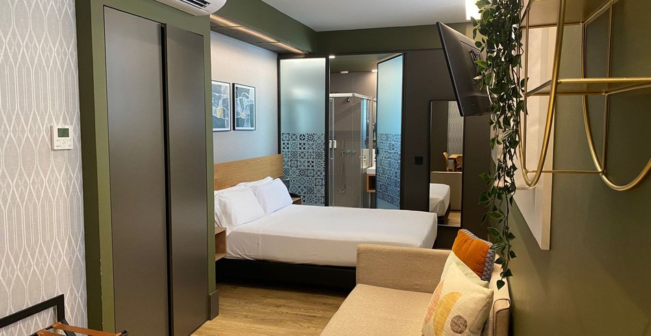 Nuestros modernos y confortables estudios, con capacidad para hasta 2 personas, están equipados con cocina y menaje básico, baño privado con artículos de aseo gratuitos, Wi-Fi, aire acondicionado y televisión.